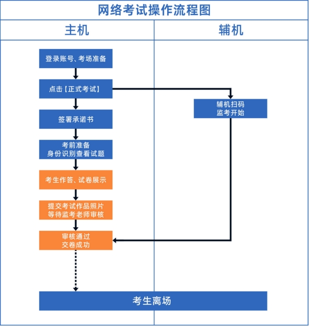 注:如辅机不开启录制将无法进行考试。辅机右上角开始计时才表明辅机录制开始。考试期间,考生如有问题可点击主/辅机“举手”功能,等待监考员联系考生,考生提问不得涉及考题相关内容。