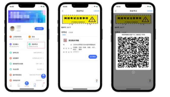 主机在考前登录“艺术升”APP在首页或报考页选择“网络考试”,进入“2026年本科招生【初选】”,选择“正式考试”系统会自动弹出辅机码。此时需要用辅机打开“艺术升”APP(注意:辅机只打开“艺术升”主页,不要登录“艺术升”),在辅机“艺术升”首页右上角打开扫描工具“[-]”,辅机扫描主机上弹出的二维码,扫码成功后主机方可进入科目看考题环节。